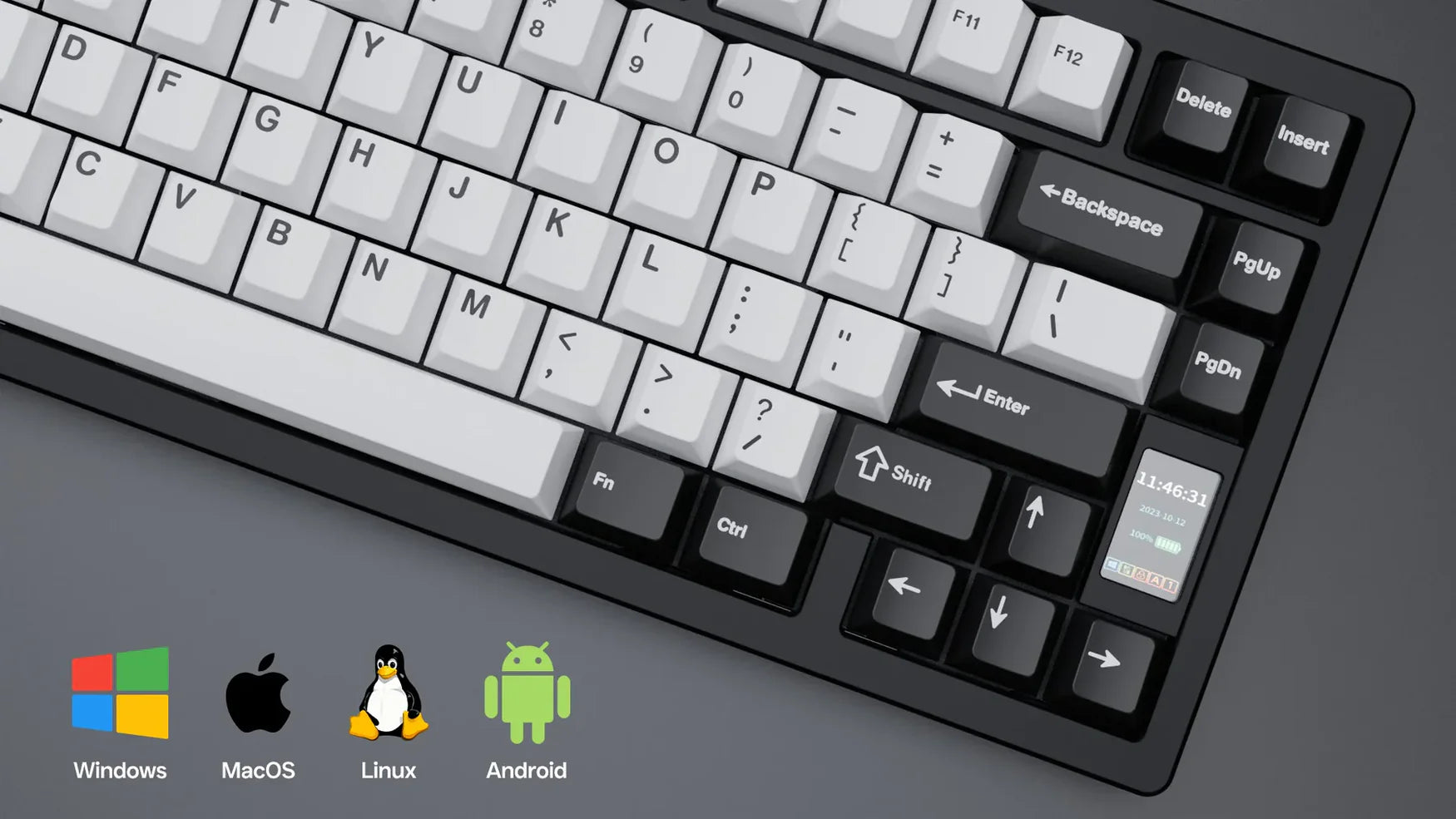 An aluminium keyboard with a screen. With many various customisation options to suit your style.
