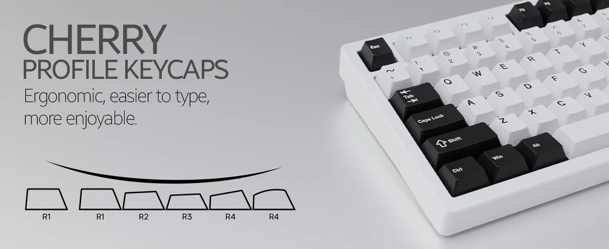 The keycaps of the ND75 are doubleshot, with each keyboard color coming with matching keycaps