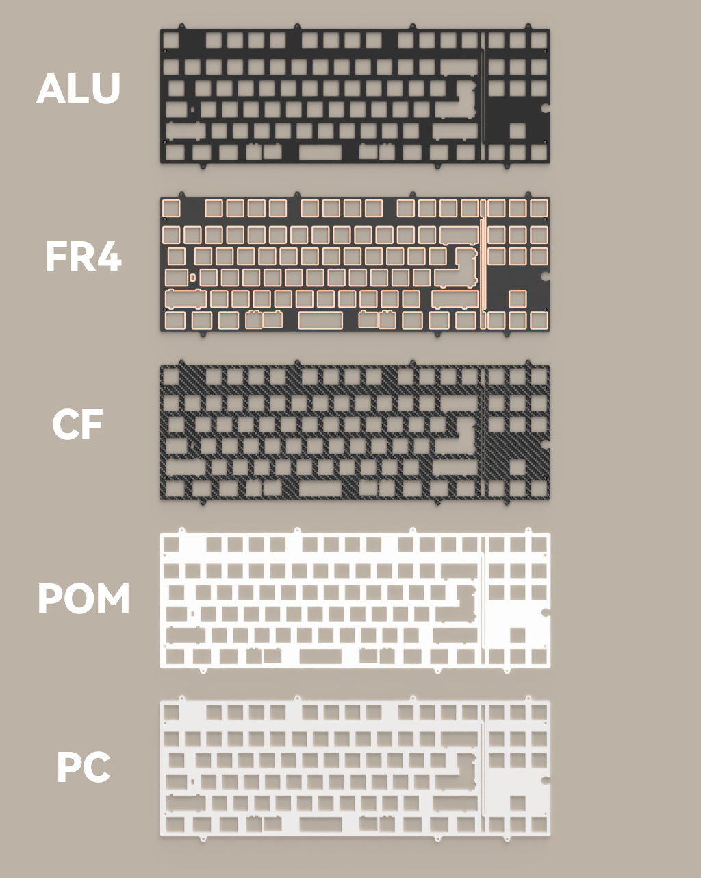 | 43 | WK | Spray-coated White | Same as the top case | Wired Non-flex PCB | Mirror PVD Dusk Weight |